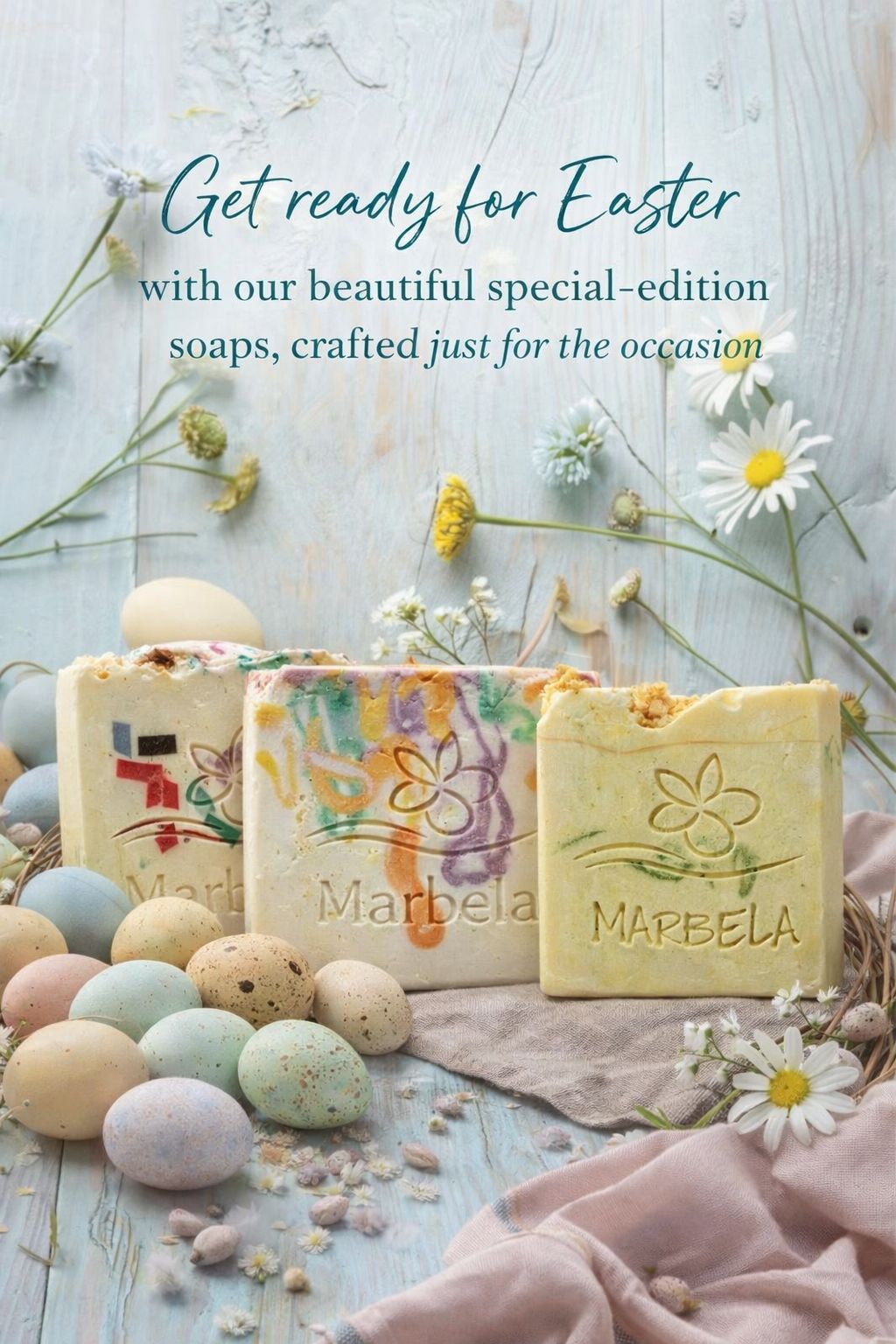 Celebrate the beauty of Easter and the freshness of spring with our handcrafted soaps, lovingly made in small batches using high-quality, skin-nourishing ingredients. Inspired by blooming flowers, soft pastel colors, and the sweet scents of the season, each bar is a little piece of springtime joy. Perfect as a thoughtful Easter gift or a special treat for yourself, our limited-edition soaps bring freshness, softness, and a touch of seasonal magic to your daily routine.