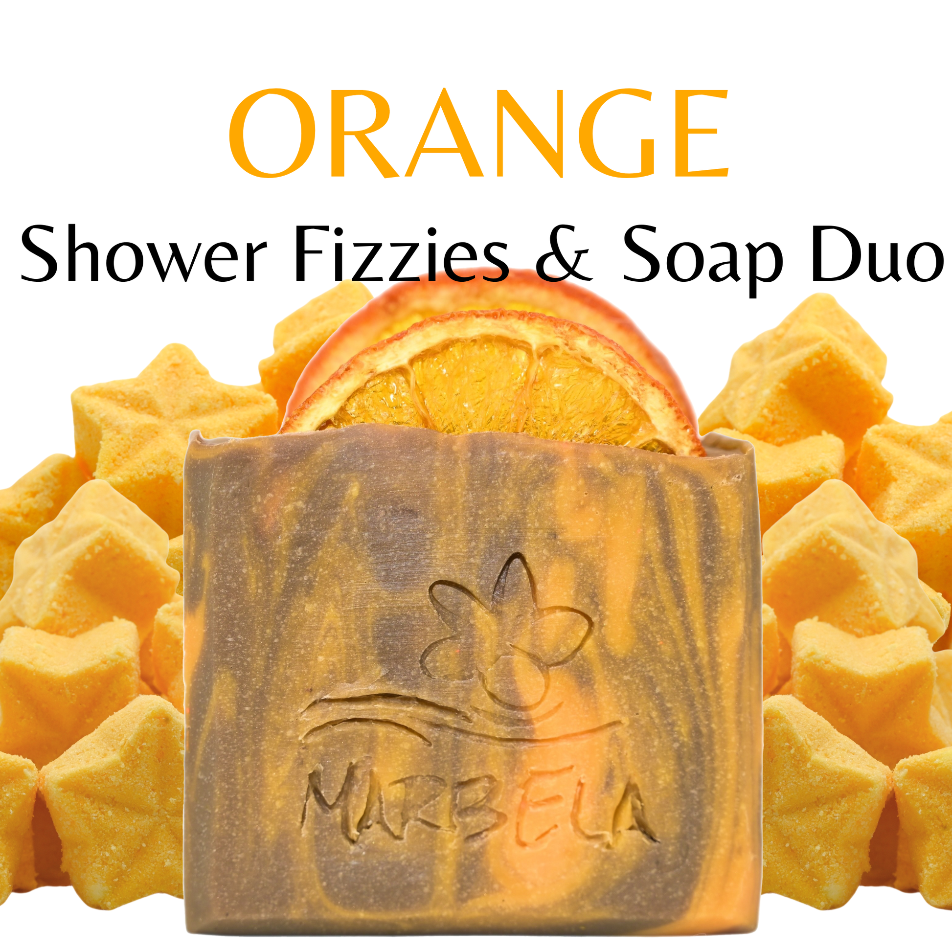 Get ready to indulge in the juicy goodness of orange with our Orange Shower Bundle! This bundle includes our handmade Orange Soap and Orange Shower Fizzies. In the shower drop this fizzy and watch as it fizzes and releases the delicious scent of orange, creating an invigorating and rejuvenating aromatherapy experience. Use the soap in the shower or by the sink, whichever place you want to enjoy this delicious scent.